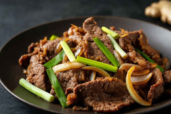 Stir fry beef with onion features tender slices of beef stir-fried with sweet, caramelised onions in a savory soy sauce, creating a flavorful, quick, and satisfying dish.